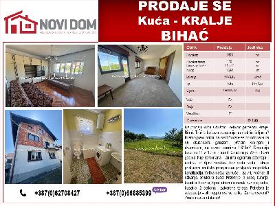 Na prodaju kuća s dušom i velikom parcelom, Kralje, Bihać. Tražite kuću za adaptaciju po vlastitim željama? Imamo pravu priliku za vas! Prodaje se porodična kuća sa okućnicom, garažom, ljetnom kuhinjom i drvarnicom, na parceli površine 1.618m². Dimenzije kuće su 11 x 10 m + sprat. Građena je 70-ih i 80-ih godina. Nije renovirana – ali ima ogroman potencijal i useljiva je! Sprat roh-bau, bez poda, voda i struja priključeni, septička jama, moguć priključak na gradsku kanalizaciju. Velika bašta iza kuće – za vrt, voćnjak ili uživanje. Struktura kuće: Prizemlje: 3 sobe, kuhinja, kupatilo, hodnici; Sprat: dnevni boravak, kuhinja, soba, kupatilo, 2 balkona i zatvorena terasa. Potrebna je adaptacija – ali mogućnosti su velike. Zainteresovani? Zovite nas za obilazak!