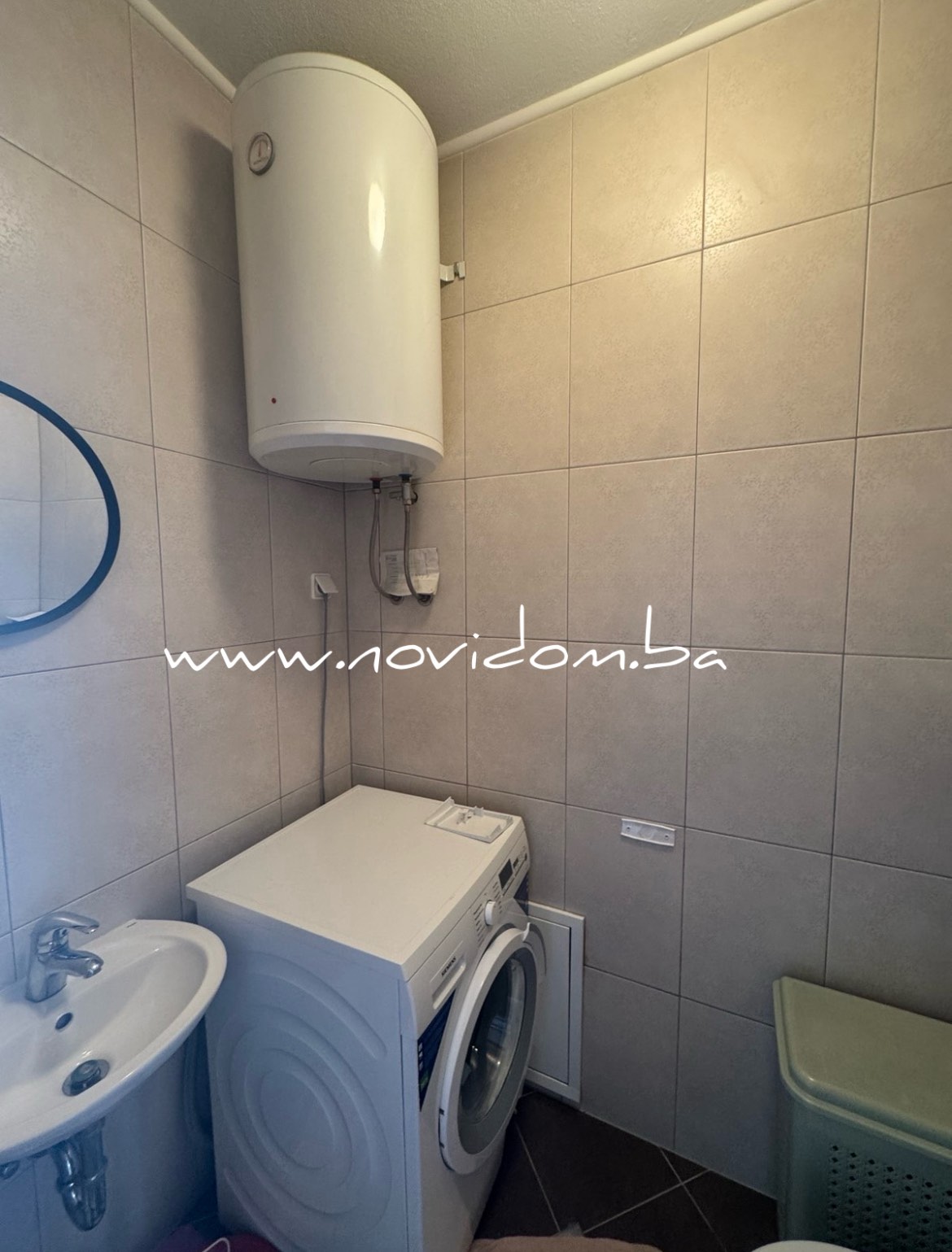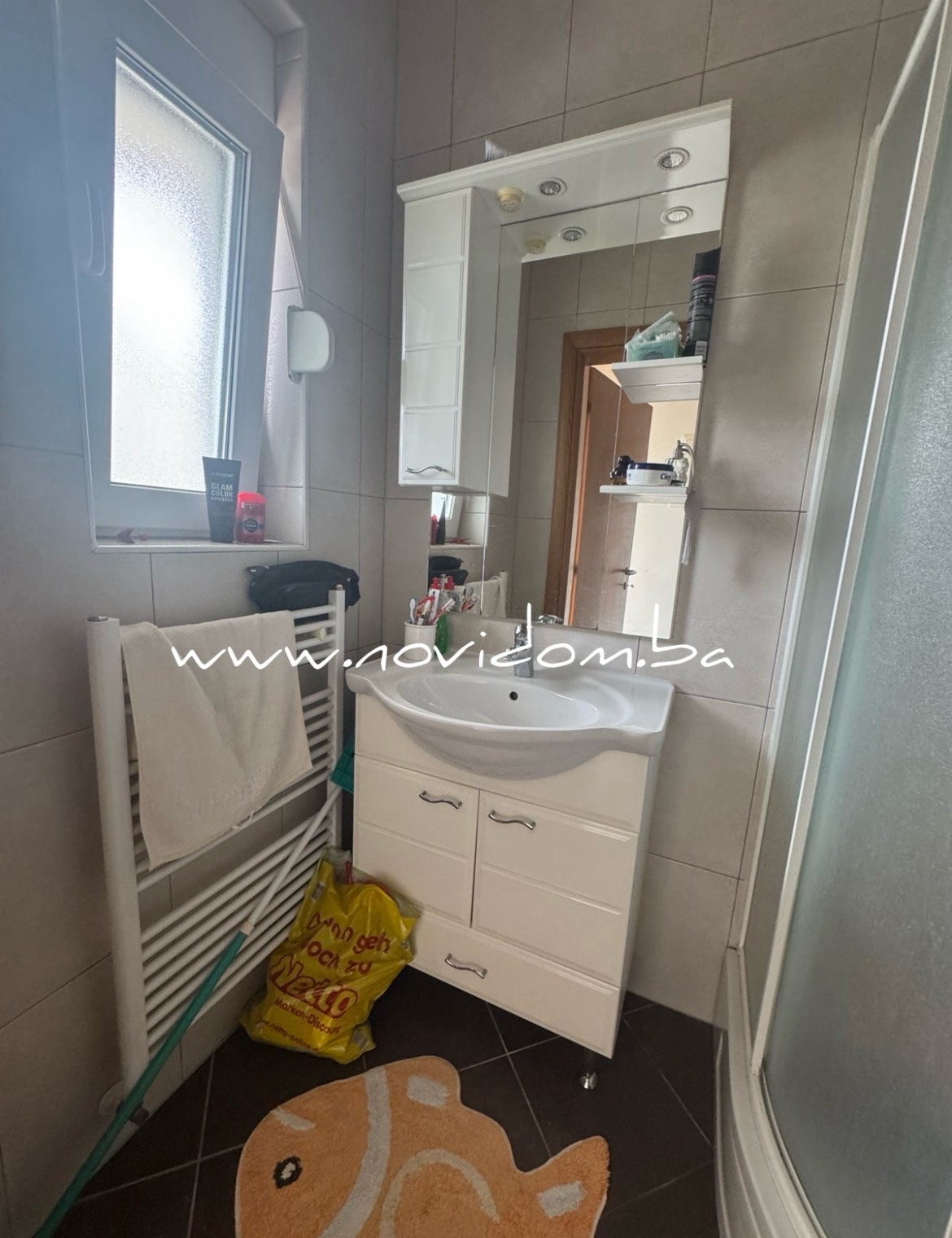 163.000 KM 3.135 KM/m2Prodaje se moderno uređen i kompletno namješten dvosoban stan površine 52m², smješten na prvom spratu zgrade na atraktivnoj lokaciji – naselje Luke. Stan se sastoji od: prostranog dnevnog boravka sa kuhinjom i trpezarijom (kuhinja rađena po mjeri – Kapić enterijeri), spavaće sobe, kupatila i zasebnog toaleta, hodnika, velike terase dimenzija 6 x 3m, ostave u prizemlju zgrade. Prednosti stana: kompletno namješten, odmah useljiv, velika terasa za uživanje tokom cijele godine, natkriveni parking (gruntovno upisan), grijanje na pelet putem zajedničke peći – svaki stan ima kalorimetar, plaća se samo potrošnja, stan se nalazi u sredini zgrade, što ga čini toplim i ekonomičnim za održavanje. Ovaj stan je idealna prilika za one koji traže udoban, topao i funkcionalan dom, ali i odlična opcija za investiciju.