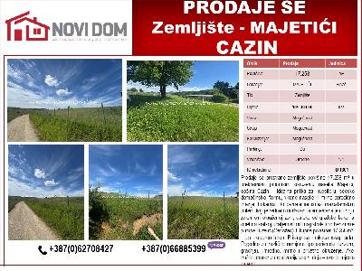 Prodaje se prostrano zemljište površine 17.258 m² u prekrasnom prirodnom okruženju naselja Majetići, općina Cazin – idealna prilika za investiciju, seosko domaćinstvo, farmu, vikend naselje ili mirno porodično imanje. Lokacija: Do parcele se dolazi makadamskim putem, koji je redovno održavan, a smještena je u tihoj i zelenilom okruženoj zoni, daleko od gradske buke, a opet na kratkoj udaljenosti od magistrale kod benzinske pumpe Đuzelić (Ostrožac). Ukupna površina: 17.258 m². Lijep i otvoren teren. Pristup sa makadamskog puta. Pogodno za različite namjene (poljoprivreda, turizam, gradnja). Prirodno, mirno i privatno okruženje. Ako tražite prostor za realizaciju većih ideja – ovo je mjesto za vas!