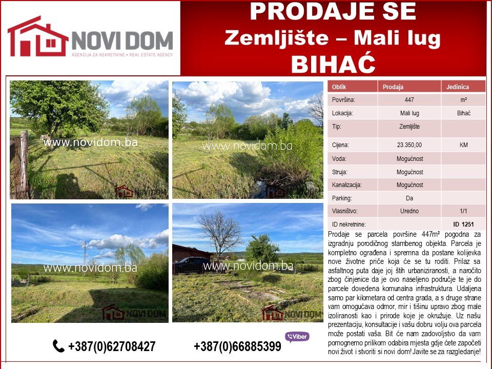 28.350 KM 63 KM/m2Prodaje se parcela površine 447m² pogodna za izgradnju porodičnog stambenog objekta. Parcela je kompletno ograđena i spremna da postane kolijevka nove životne priče koja će se tu roditi. Prilaz sa asfaltnog puta daje joj štih urbaniziranosti, a naročito zbog činjenice da je ovo naseljeno područje te je do parcele dovedena komunalna infrastruktura. Udaljena samo par kilometara od centra grada, a s druge strane vam omogućava odmor, mir i tišinu upravo zbog male izoliranosti kao i prirode koje je okružuje. Uz našu prezentaciju, konsultacije i vašu dobru volju ova parcela može postati vaša. Bit će nam zadovoljstvo da vam pomognemo prilikom odabira mjesta gdje ćete započeti novi život i stvoriti si novi dom! Javite se za razgledanje!