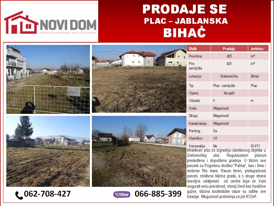 NIJE DOSTUPNO! - Plac za izgradnju kuće 425kvm - Srebrenička - BIHAĆ